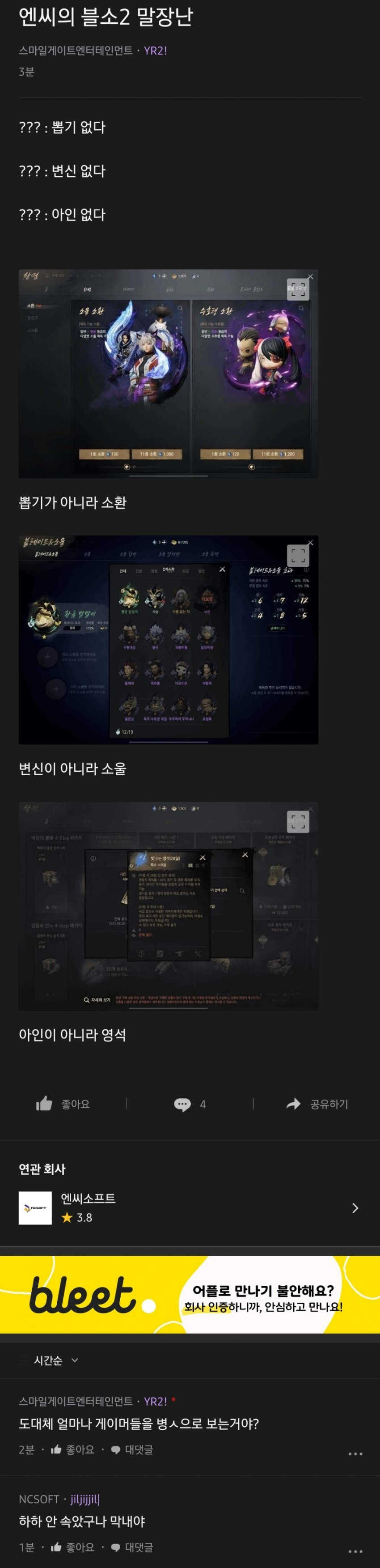 블소2) 블라인드 NC 직원 반응 근황