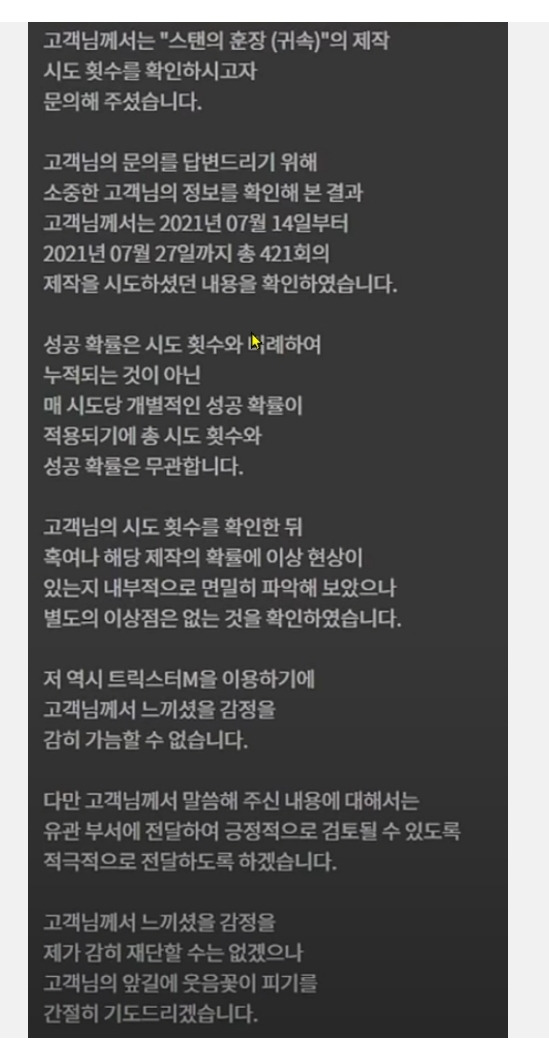 로스트 저지먼트 갓겜 판독 결과